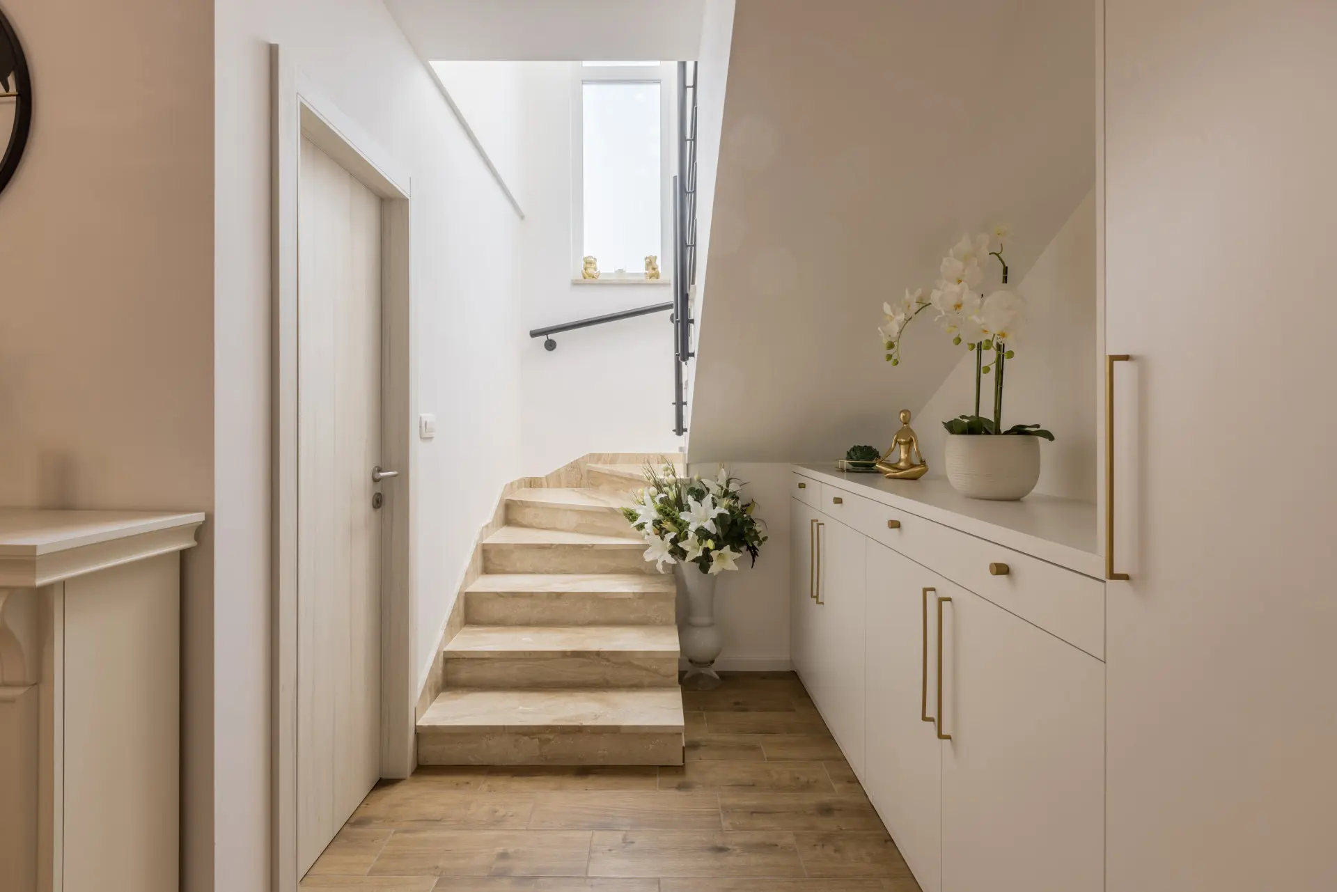 In addition to these parts being spatially connected, they are also united by an elegant note that runs through the entire apartment, from the ground floor to the first floor where there are 3 fully air-conditioned bedrooms, as well as a balcony made for enjoying a good glass of wine or fresh air. A shower and a hot tub are available in 2 bathrooms.