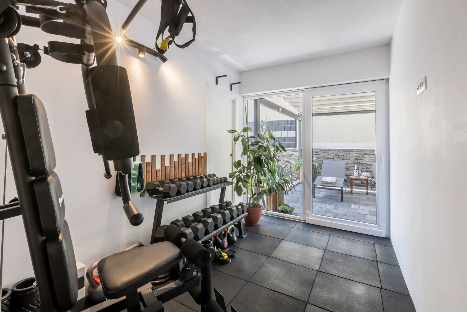 Luxury apartment with a jacuzzi on the terrace and a mini gym